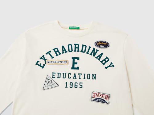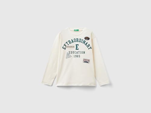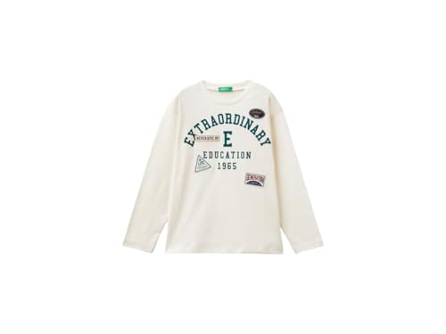 United Colors of Benetton - يونايتد كولرز اوف بينيتون تيشرت مطبوع برقبة دائرية ضيقة للاولاد من عمر 6-7 سنوات، اوف وايت