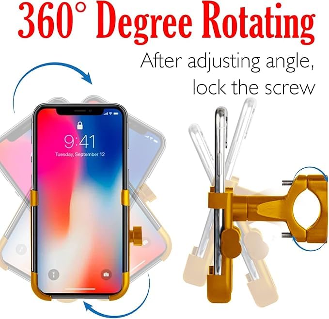 Generic - حامل دراجة عالمي ، هيكل معدني دوار 360 درجة، حامل هيكل معدني للدراجات النارية، يناسب جميع الهواتف الذكية (ذهبي) - SACAR