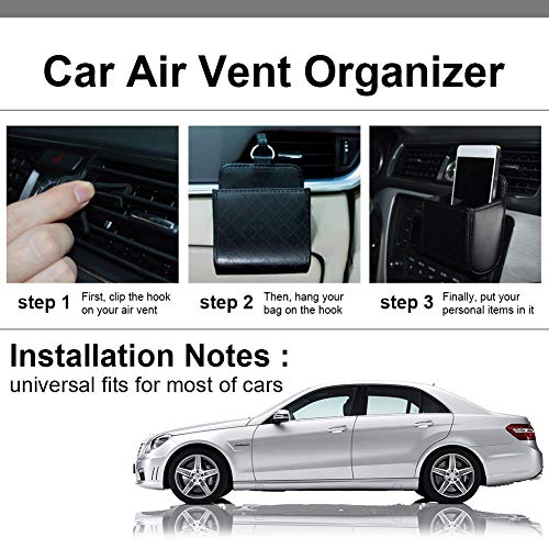 - ◇【سهل التنظيف والخلع】-- سهل التركيب والإزالة بخطاف تثبيت، فقط قم بتعليقه في فتحة تهوية السيارة؛ السطح المصنوع من الجلد الصناعي والجزء الداخلي سهل التنظيف للغاية بقطعة قماش تنظيف صغيرة أو وسادة تنظيف فقط، ستنتهي من التنظيف في بضع دقائق