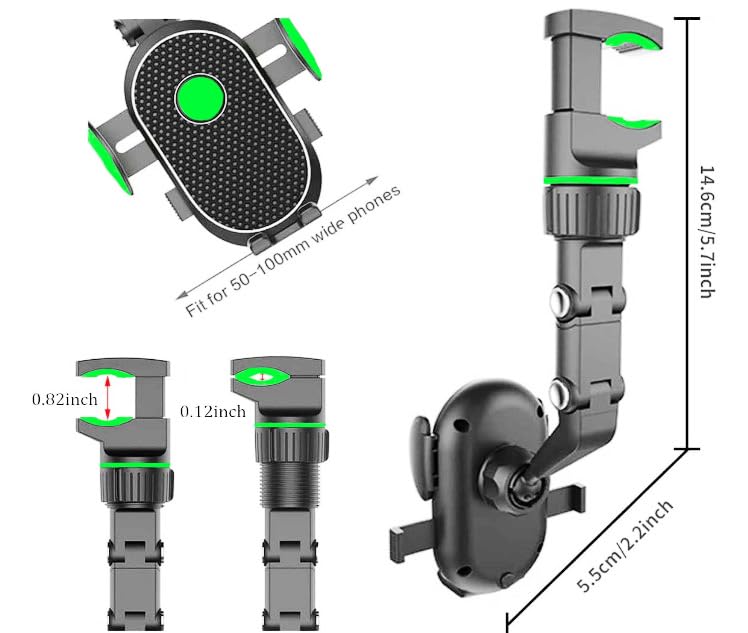 Generic - حامل الموبايل العالمي للسيارة والقابل للدوران الذي يثبت على مراية الصالون ، من ملحقات السيارة ( اخضر كود:9603)- من كابر تريد