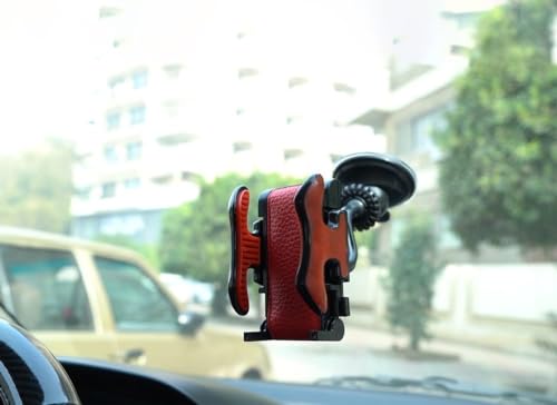 Generic - حامل موبايل عالمي للسيارة مع كاس شفط تلقائي للزجاج الامامي او التابلوة او فتحة التهوية ، مصنوع من الجلد وبطانة مطاطية - دوران 360 درجة وذراع قابل للتعديل - من كابر مصر 2020