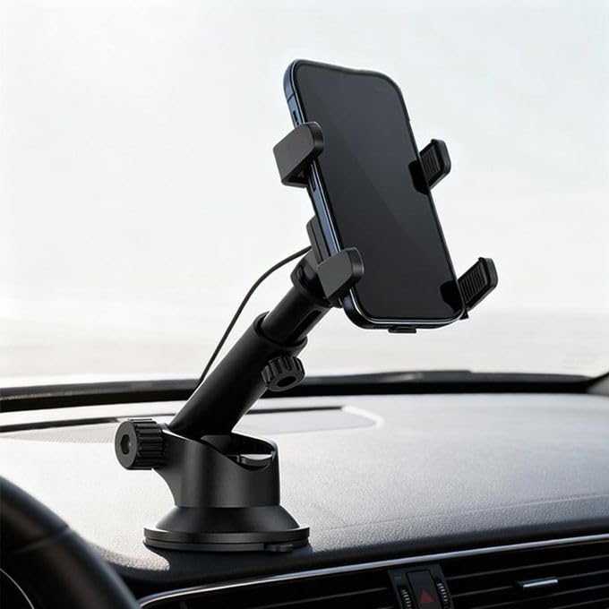 Generic - حامل موبايل عالمي للسيارة مع قاعدة شفط قوية - حامل قابل للتعديل للوحة القيادة والزجاج الامامي - مقبض امن مضاد للانزلاق للهواتف الذكية
