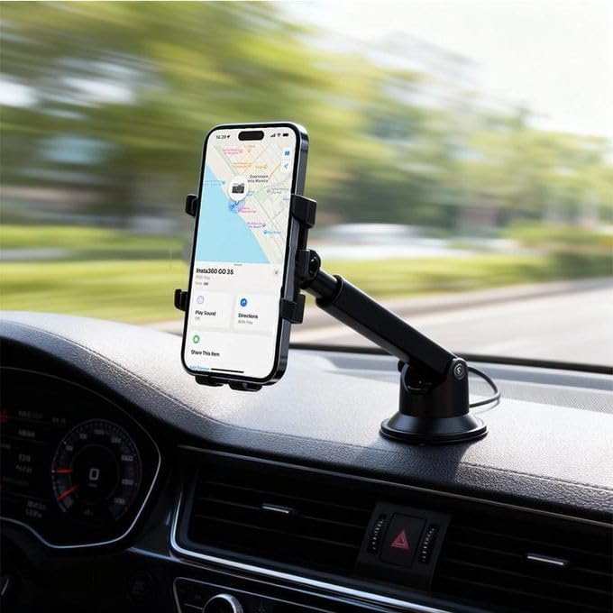 - قاعدة شفط قوية - يتم تثبيت كوب الشفط القوي بإحكام على لوحة القيادة أو الزجاج الأمامي لتركيب مستقر.