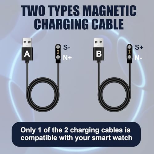 - 【مغناطيس ومضاد للمغناطيس】 لاحظ أن هذه الشواحن لها اتجاهات مغناطيسية مختلفة، يرجى التأكد من استخدام الكابل الصحيح لساعتك الذكية. وهذا يضمن شحن ساعتك بشكل صحيح دائمًا، مع منع الضرر المحتمل من الاتصال السيئ.