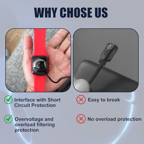 - 【متين وموثوق】 مصنوع من بلاستيك ايه بي اس وبلاستيك بي في سي مع أسلاك نحاسية عالية الجودة، شاحن الساعة الذكية هذا قوي ومصمم ليدوم طويلاً. وفي الوقت نفسه، تم تجهيز منتجاتنا بحماية من ماس كهربائى لضمان سلامة أجهزتك والشواحن.
