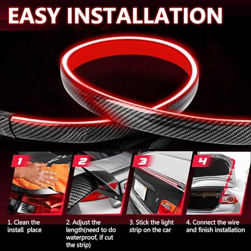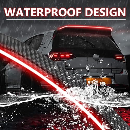 Generic - شريط إضاءة LED مرن عالمي، جناح سبويلر خلفي 4 في 1 للسيارة، يعمل كـ إضاءة فرامل وإشارات انعطاف، تصميم مقاوم للماء بمظهر ألياف الكربون، تثبيت لاصق سهل.