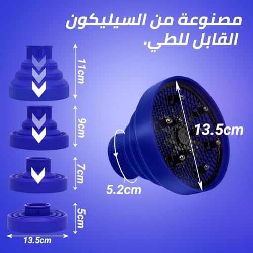 - موزع هواء لمجفف الشعر قابل للطي من السيليكون: تم تصميم هذا الموزع المبتكر المصنوع من السيليكون عالي الجودة لتوزيع الهواء بالتساوي، ما يمنح الشعر مظهرًا طبيعيًا كثيفًا مع حمايته من الحرارة الزائدة.