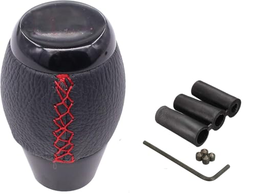 Generic - غطاء لعصا الفتيس ناقل الحركة اليدوي من الجلد الأسود مع خياطة حمراء، محولات 8/10/12 ملم