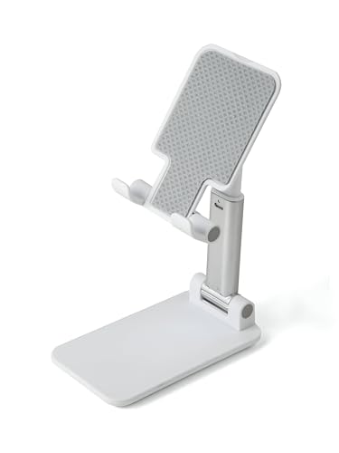- يتميز حامل الموبايل القابل للطي بتصميم مريح يسمح بزوايا قابلة للتعديل من 0 إلى 70 درجة وتعديلات ارتفاع تتراوح من 13 سم إلى 16 سم. تضمن هذه المرونة تجربة مشاهدة مريحة، مما يساعد على الحفاظ على وضعية جيدة وتقليل الضغط على الرقبة والظهر أثناء الاستخدام الطويل.