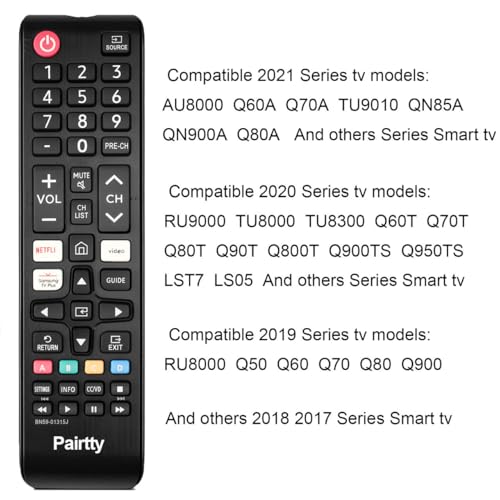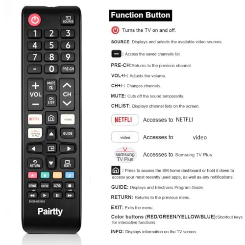 Pairtty - جهاز تحكم عن بعد بديل عالمي BN59-01315J لتلفزيونات سامسونج، متوافق مع جميع شاشات سامسونج LCD و ليد وHD وثلاثية الأبعاد وغيرها من التلفزيونات الذكية مع أزرار تطبيق سريع