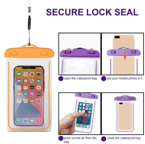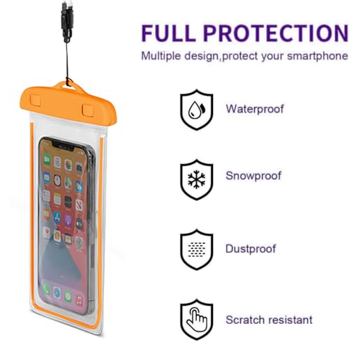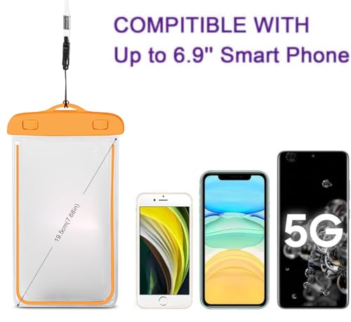 Generic - كيس موبايل عالمي مقاوم للماء متوافق مع جراب الموبايل للرياضات المائية الخارجية والتصوير تحت الماء بدون قلق للسباحة البحرية وركوب القوارب والمشي لمسافات طويلة وركوب الكاياك وصيد الأسماك (لون برتقالي)
