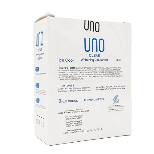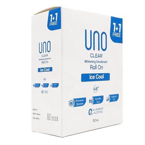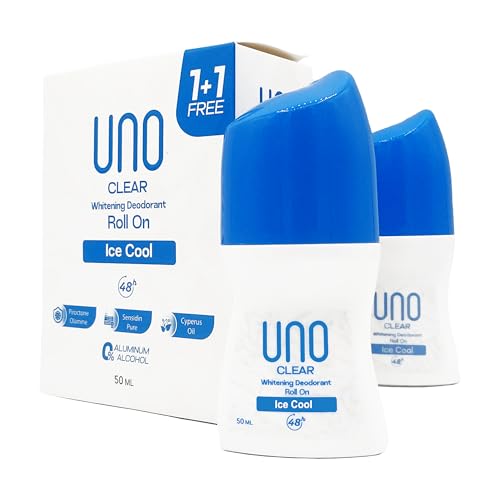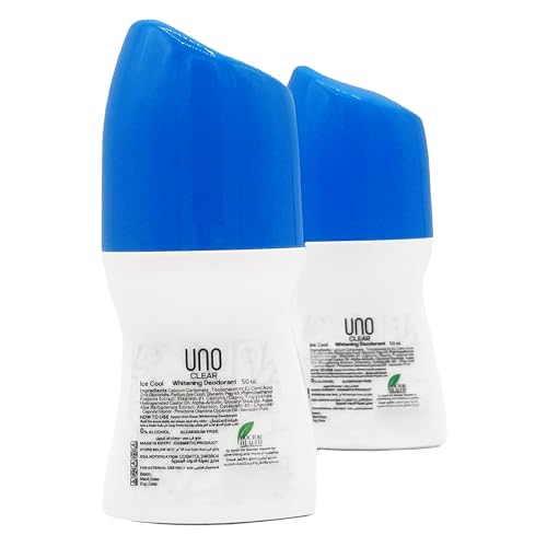 UNO Clear - مزيل العرق رول اون الكريمي للتبييض برائحة الثلج من اونو كلير، 50 مل (عبوة من قطعتين)