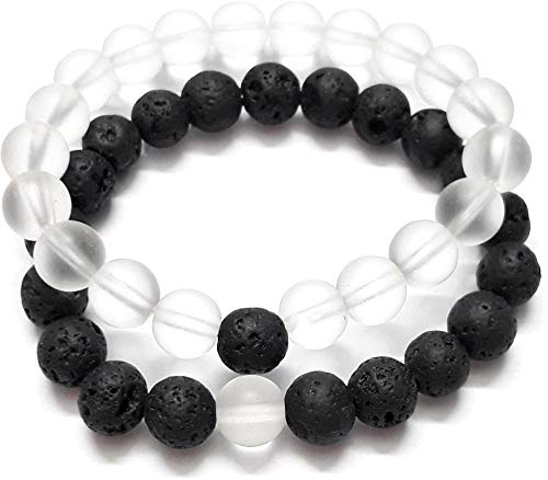 generic - اساور مسافات للازواج من يونو اكسيسوريز من حجر اللافا البركاني وحجر شفاف للجنسين