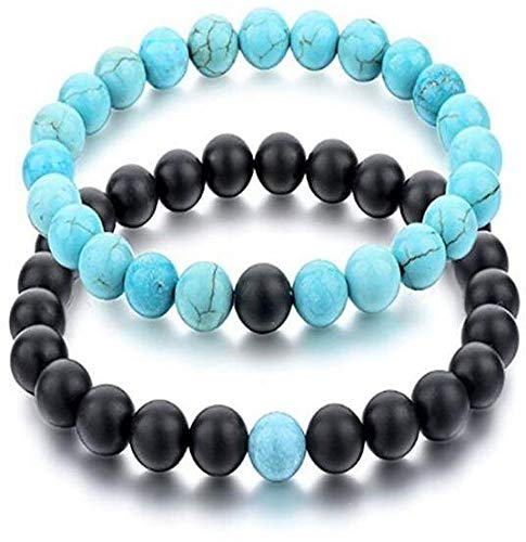 Unoaccessories - الفيروز و ONYX الخرز الأزواج أساور للجنسين الأصدقاء معبأة في علبة هدايا صغيرة