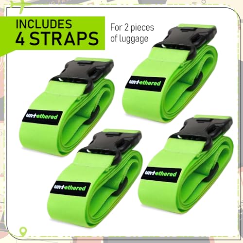 Untethered - مجموعة من 4 أحزمة أمتعة غير مقيدة، أحزمة لتثبيت شنطتك بأمان أثناء السفر، ملحق فاخر لإغلاق شنط السفر