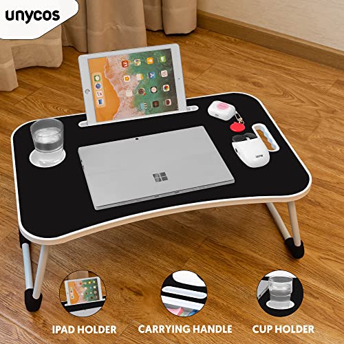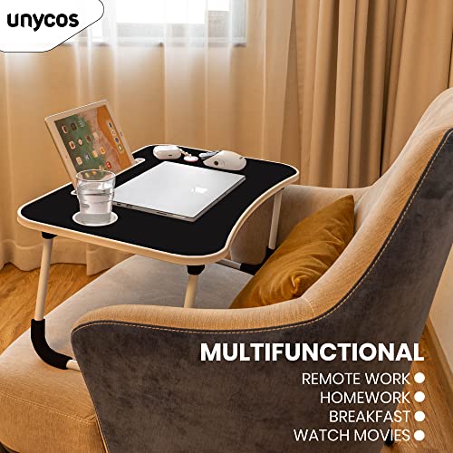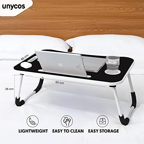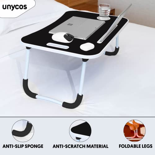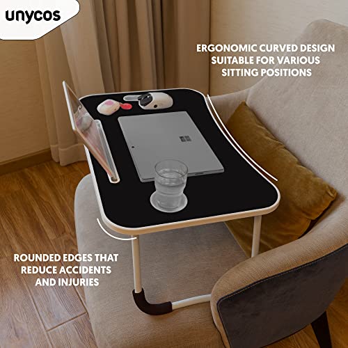 unycos - طاولة كمبيوتر قابلة للطي من يونيكوس، صينية سرير، طاولة سرير محمولة، طاولة كمبيوتر صغيرة، صينية للإفطار، حامل قراءة السرير (أسود (بدون درج))