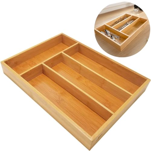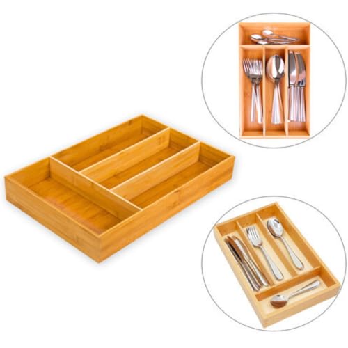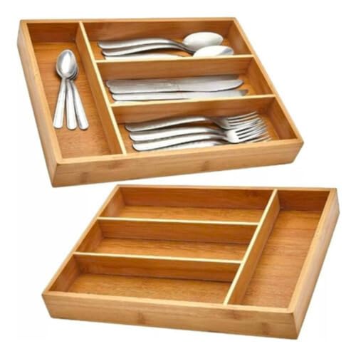 AM IMPORT - حامل ادوات المائدة من يوني هوم منظم ادراج لادوات تناول الطعام البامبو صينية درج المطبخ مجموعة فواصل وحامل متعددة الاستعمالات