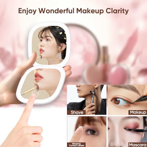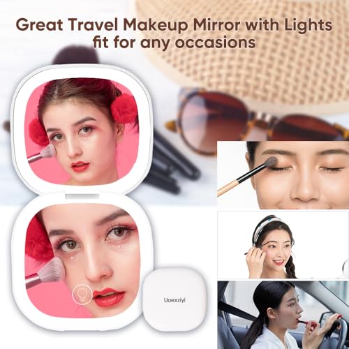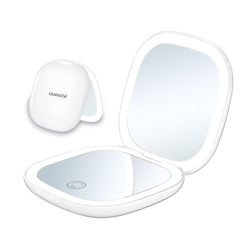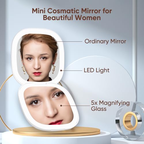 Uoexziyi - مراية صغيرة بإضاءة ليد من اوكسزييي، مراية مكياج مضيئة للسفر مع تكبير 5 أضعاف وجيب محمول قابل للتعتيم لشنطة اليد والجيب، شحن USB (لون أبيض)