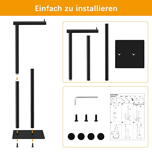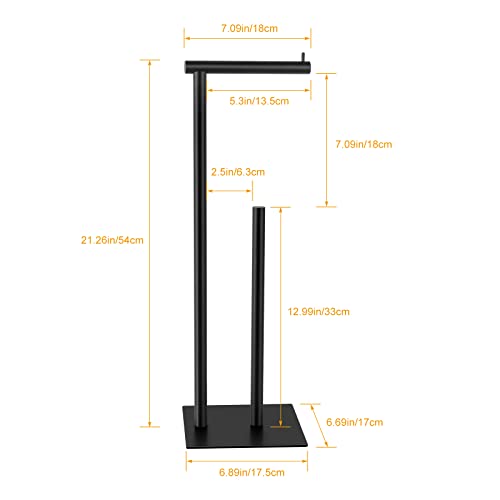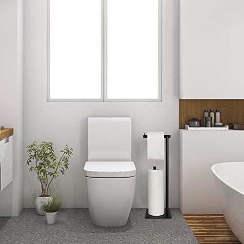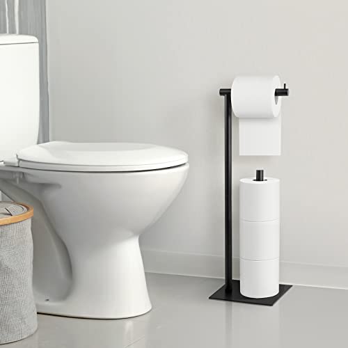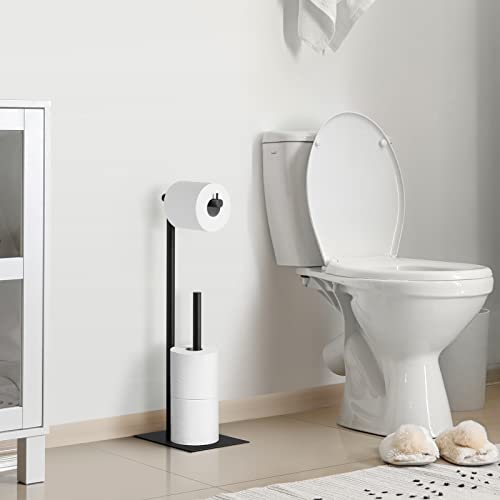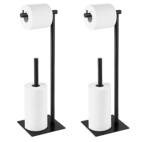 UOMIO - حامل ورق التواليت معدن من اوميو، رف تخزين قائم بذاته، حامل بكرات ورق الحمام بمساحة تخزين احتياطية، أسود، قطعتان