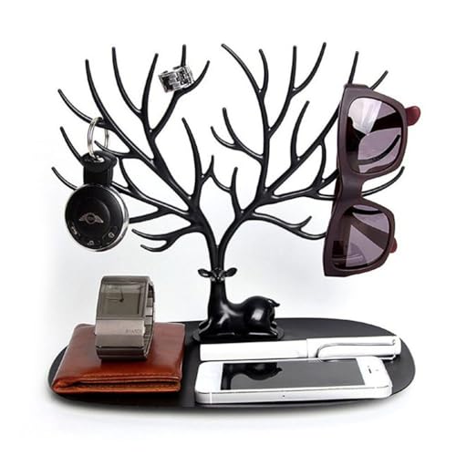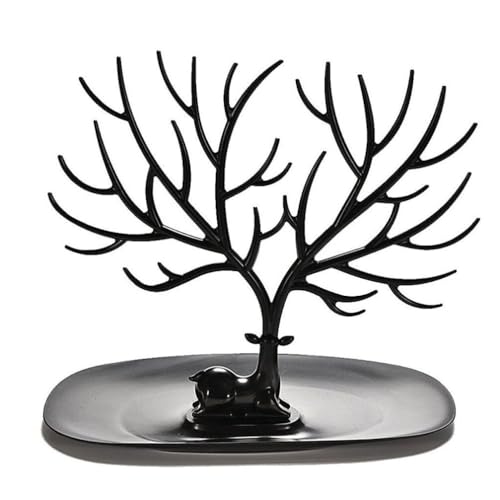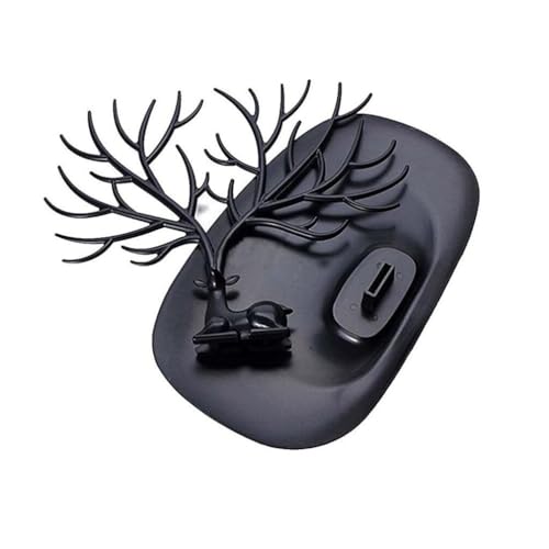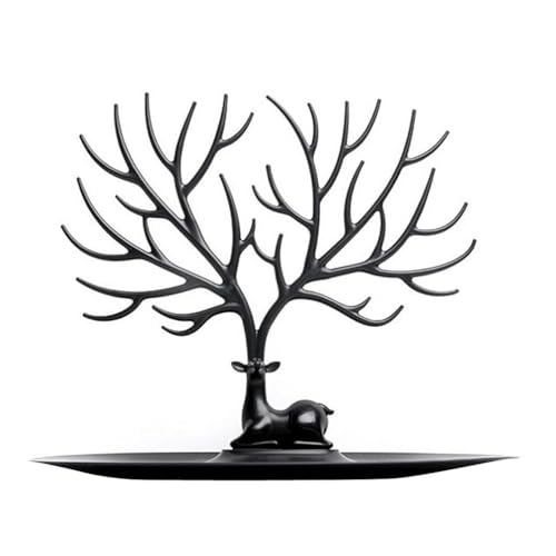 Spaceshoop - حامل لتنظيم وعرض المجوهرات من يو اونلي تك، بتصميم غزالة ذات قرون، مناسب للخواتم والسلاسل وكهدية في الكريسماس، لون اسود، أكريلونيتريل بوتادين ستايرين