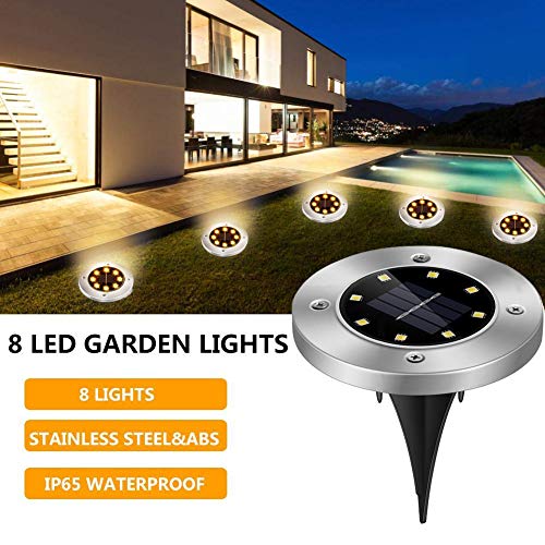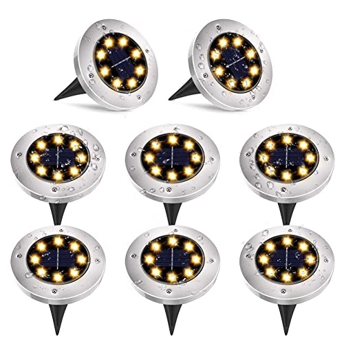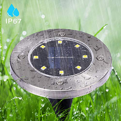 UOUNE - مصابيح خارجية تعمل بالطاقة الشمسية من يوني ليد ارضية حديقة 8 لمبات ضوء شمسي ابيض دافئ 3000 كلفن شمسية مقاومة للماء IP67 للحديقة والفناء عبوة بلاستيك