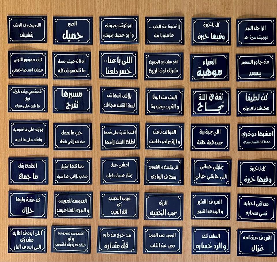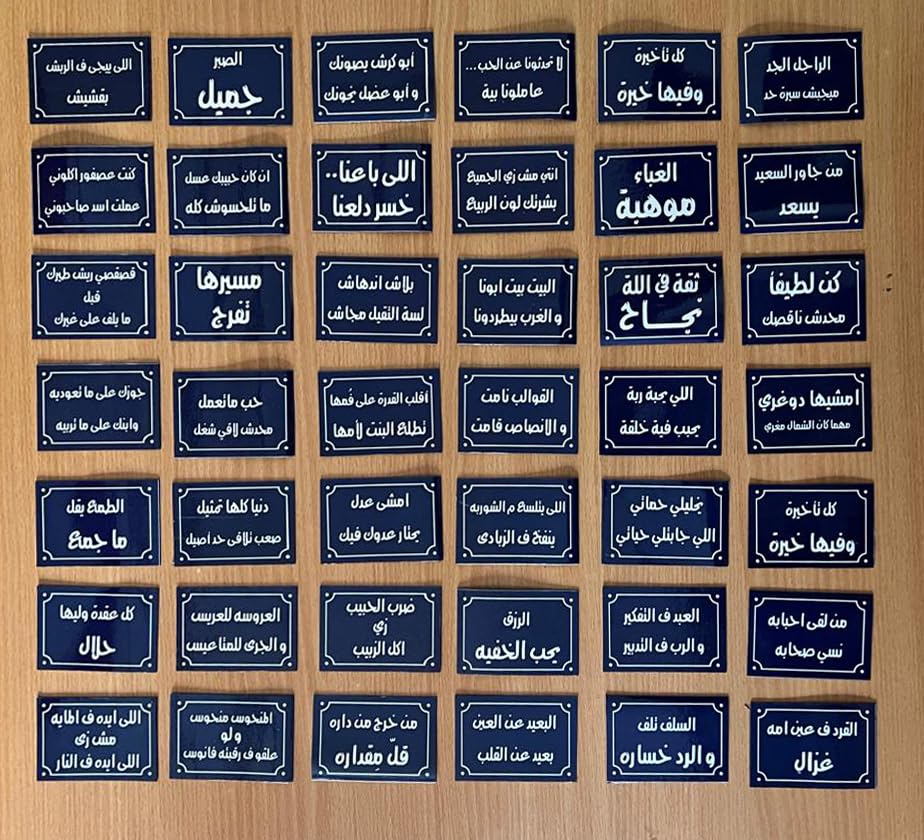 - مجموعة مغناطيس الثلاجة: تحتوي على 20 قطعة من المغناطيس بتصاميم متنوعة تحمل أقوالاً وأمثلة شعبية مصرية أصيلة لإضافة لمسة تراثية مميزة لمطبخك