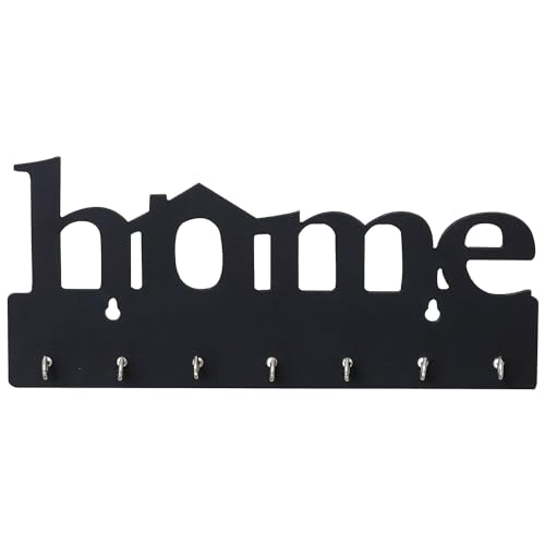 UP16 - قطع منتجات ديكور منزلي، حامل مفاتيح منزلي خشبي فاخر (29 سم × 13.5 سم × 0.4 سم) مع 7 خطافات من يو بي 16 (لون أسود)
