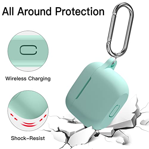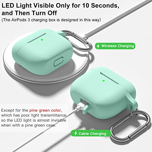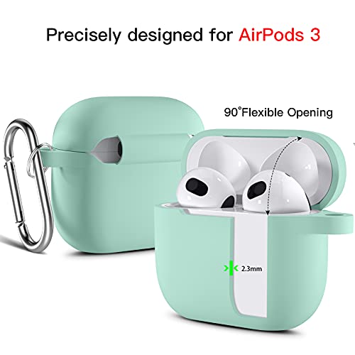 Upeak - جراب حماية متوافق مع سماعات ايربودز الجيل الثالث 2021 من ابيك، غطاء حماية من السيليكون مغلف بالكامل وممتص للصدمات لحافظة آبل ايربودز 3، مع سلسلة مفاتيح، أخضر فاتح