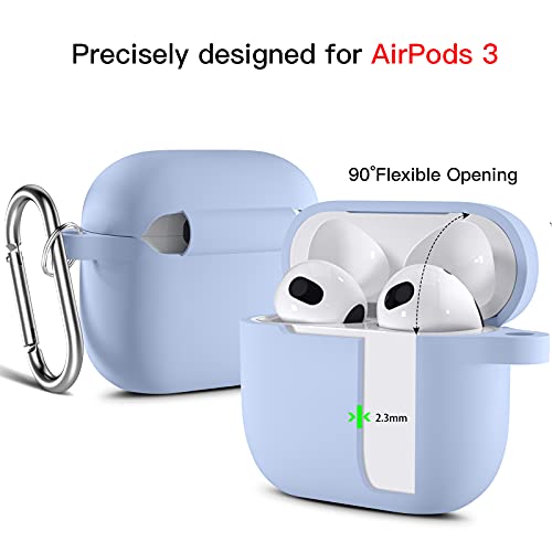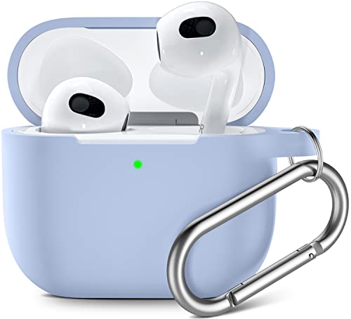 Upeak - يو بيك حافظة حماية متوافقة مع ايربودز الجيل الثالث 2021، من السيليكون ملفوفة بالكامل ممتصة للصدمات لابل 3، سلسلة مفاتيح، بنفسجي فاتح ابل 3
