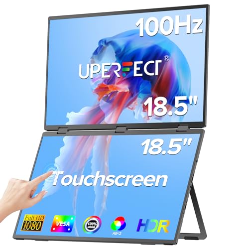 UPERFECT - يو بيرفيكت شاشة مزدوجة محمولة تعمل باللمس 18.5 انش 100Hz من دلتا، موسع شاشة لابتوب ثلاثية قابلة للطي مع حامل وفيزا للابتوب والكمبيوتر والجوال ووحدة التحكم بالالعاب (لا حاجة الى برنامج تعريف)
