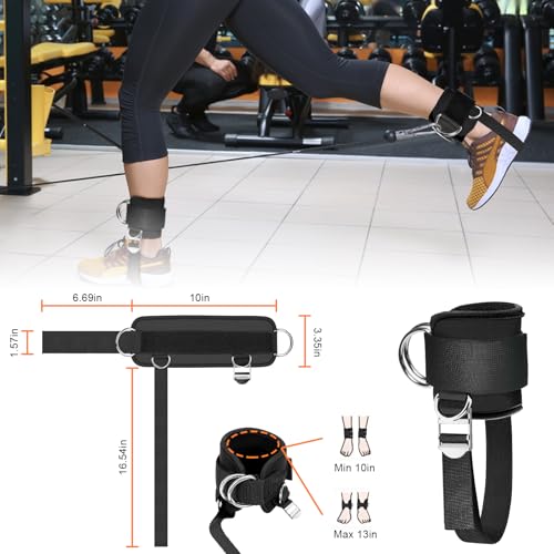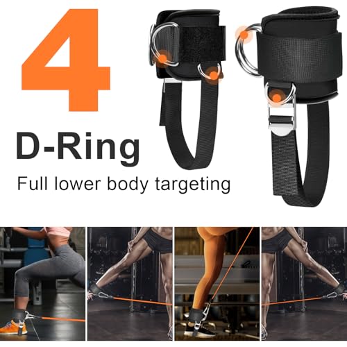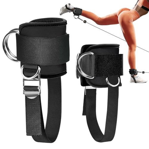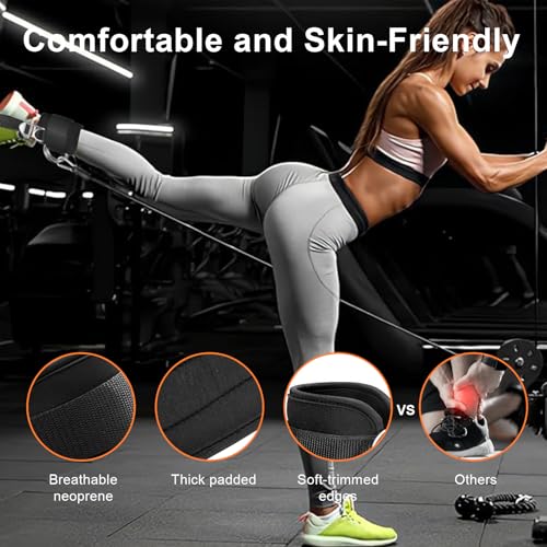 IPJIB - زوج أساور كاحل مطورة لماكينة الكابل من نيوبرين مبطن مريح مع 4 حلقات D، أساور كاحل قابلة للتعديل للجيم لتمارين ركلات المؤخرة وتمارين مد الساق ورفع المؤخرة وشد الساقين للنساء والرجال