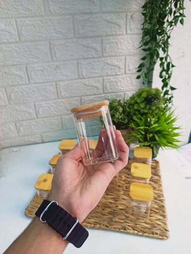 - 【جميلة ولطيفة】يمكن أن تساعدك برطمانات التوابل الزجاجية المربعة الجميلة المكونة من 12 قطعة بسعة 142 جم مع أغطية من الخيزران على فرز وتخزين الكثير من التوابل وجعل خزانة مطبخك نظيفة وجميلة.