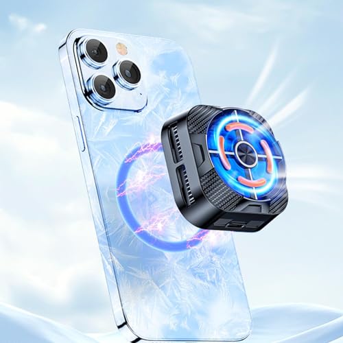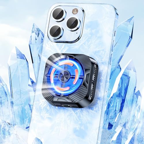 PUCHEN - مبرد مغناطيسي مطور للموبايل الخلوي بتصميم مروحة تبريد محمولة وخفيفة الوزن بإضاءة ار جي بي مع مساحة تبريد أكبر للموبايل والتابلت وجهاز اي باد (مبرد مغناطيسي، موديل X79)