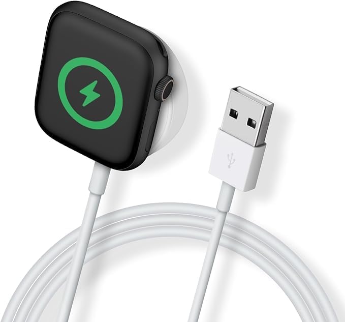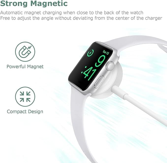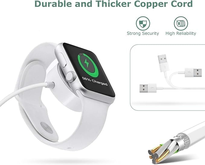 Generic - شاحن ساعة بديل مطور وكابل شحن لاسلكي مغناطيسي USB متوافق مع ساعة ابل ووتش متوافق مع جميع ساعات ابل ووتش سلسلة /8/7/6/5/4/3/2/1/SE لون أبيض بطول 1 متر