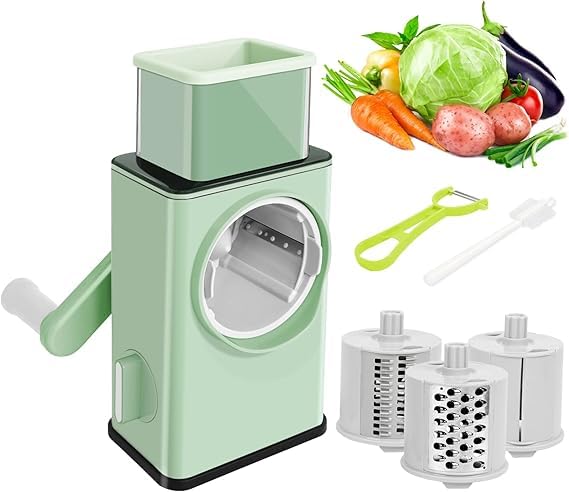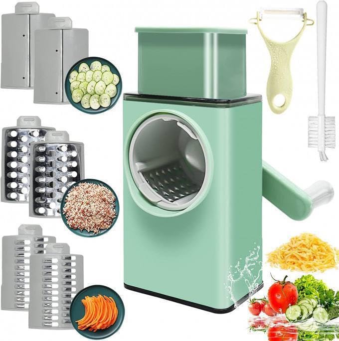 - 【أكثر كفاءة وبدون مجهود】 تصميم شفرة أسطوانية أكبر وأعرض يسمح لك بالتدوير مرة واحدة تعادل التقطيع 44 مرة، يمكن أن تساعدك مبشرة الجبن على إعداد المكونات والوجبات في دقائق فقط، مما يمنحك المزيد من الوقت للاسترخاء بعد العمل. تتضمن أيضًا مقشرة خضروات إضافية مجانية وفرشاة تنظيف.