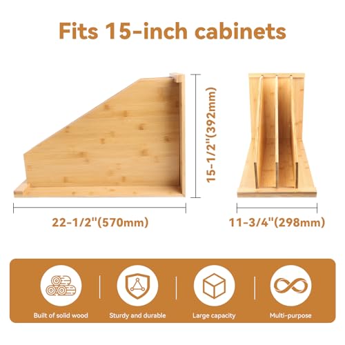 Brvclon - فواصل صواني مطورة للخزائن، 15 انش ارتفاع × 22 انش عمق × 12 انش عرض، مقسم صينية خزانة المطبخ للمقالي والاغطية والاواني والمقالي واوراق البسكويت وألواح التقطيع. مع 3 فواصل للحفاظ على المطبخ منظما (1)