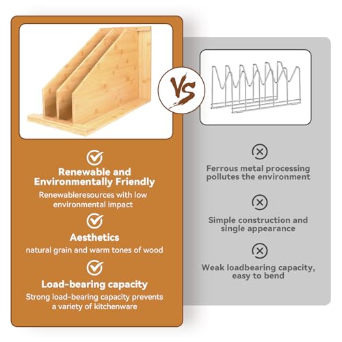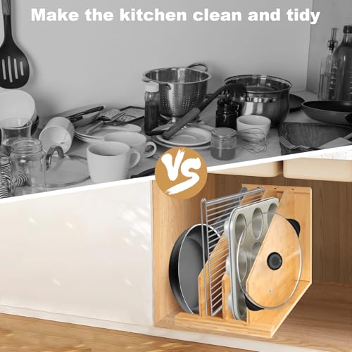 - منظم الأواني والمقالي تحت الخزانة مصنوع من الخشب الصلب، المادة الخشبية ليست خضراء وصحية وصديقة للبيئة فحسب، بل أيضًا أكثر ملاءمة للون خزانتك، دعم قوي، هيكل صلب، أكثر قوة ومتانة