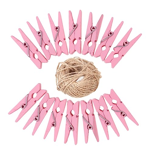 UPKOCH - ابكوتش عبوة من 100 قطعة من مشابك الملابس الوردية، مشابك ورق الصور، اوتاد خشبية، حبل، اوتاد صغيرة، مشابك غسيل خشبية، ورق صور، اوتاد ملابس