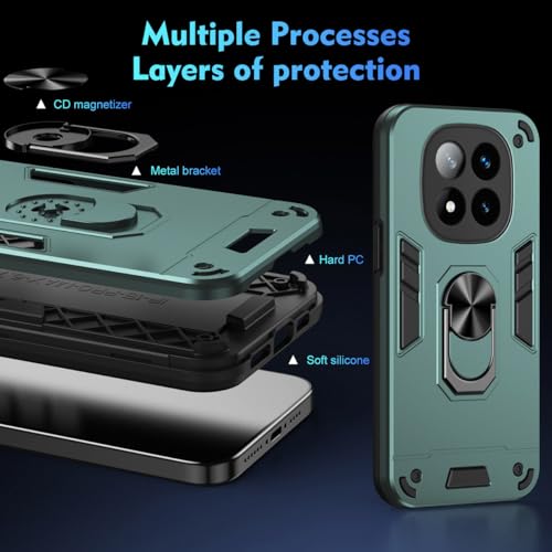 UPLAI - جراب حماية فائق النحافة متين من البولي كربونات والبولي يوريثين الحراري من الدرجة العسكرية مضادة للصدمات مع حامل مغناطيسي لموبايل شاومي ريدمي نوت 14 برو بلس شبكة الجيل الخامس 5G من يوبلاي، أخضر