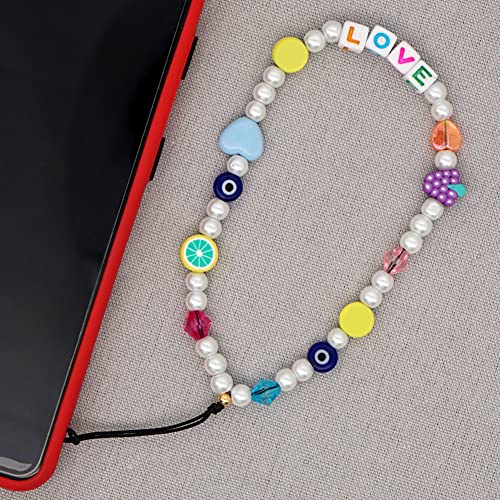 - أنماط متعددة: سلسلة موبايل من خرز السيراميك الناعم بنمط بوهيمي مع العديد من الدلايات الصغيرة المثيرة للاهتمام، مثل حروف كلمة حب والوجوه المبتسمة وقلوب الحب والفواكه والكريستالات وخرز الزهور الزجاجية، أنماط جميلة جدًا.