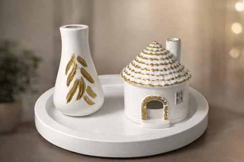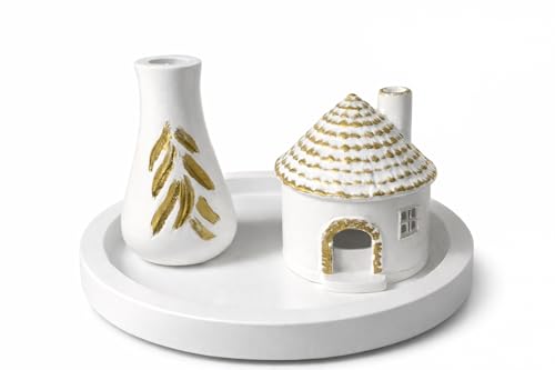 Generic - طقم ديكور منزلي راقي – بيت مبخرة وحامل شمعة تي لايت مع فازة وطبق – هدية مثالية للعيد، عيد الفطر، عيد الأم، هدايا زواج ومناسبات متعددة – لمسة فخامة ودفء للمنزل