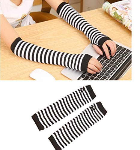 Upstore - زوج قفازات اب ستور طويلة بدون اصابع، قفازات تدفئة الذراع محاكة بثقب الابهام، قفازات قابلة للتمدد، كم ذراع للنساء والفتيات
