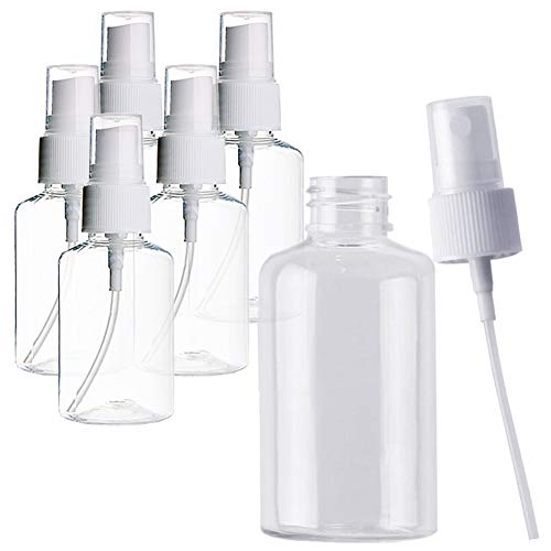 Upstore - 6 عبوات (50 مل/ 1.7 اونصة) زجاجة بخاخ فارغة من البلاستيك الشفاف، بخاخ رذاذ دقيق للرشاشات المحمولة القابلة لاعادة الملء، حاويات للمكياج، وعاء سفر فرعي، تعبئة لمجانسة العطور والماء المقطر