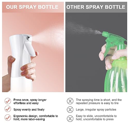 - 【مقاومة للتسرب】توفر زجاجة بخاخ تصفيف الشعر في صالونات التجميل رذاذًا يشبه الهباء الجوي، مما يمنحك رذاذًا مستمرًا ويمكن حتى استخدامها رأسًا على عقب دون تسرب أو فقدان برايم. يوفر الكمية المناسبة من الماء لتشبع الشعر بشكل معتدل دون أن يتساقط مثل الأنواع القديمة، أو تجعيد الشعر المنعش أو ترويض رأس السرير في الصباح.