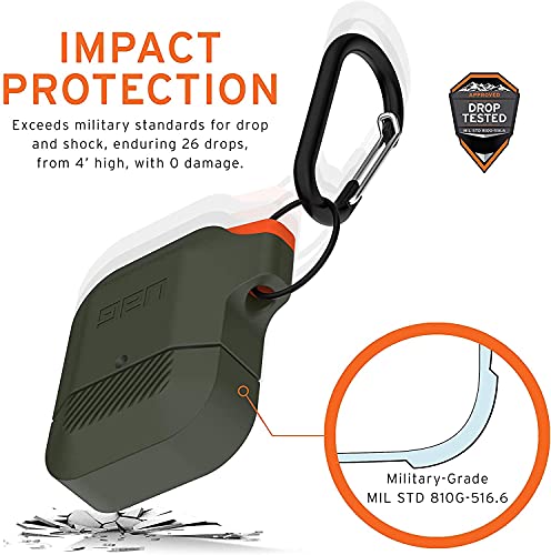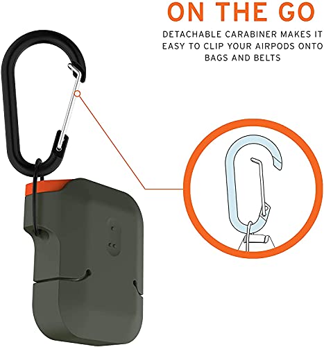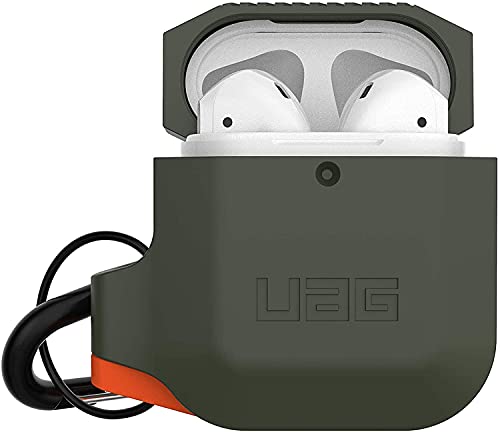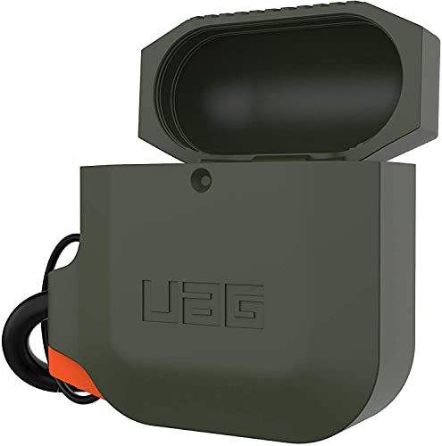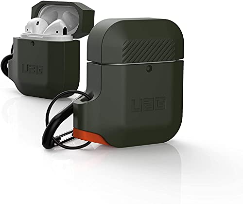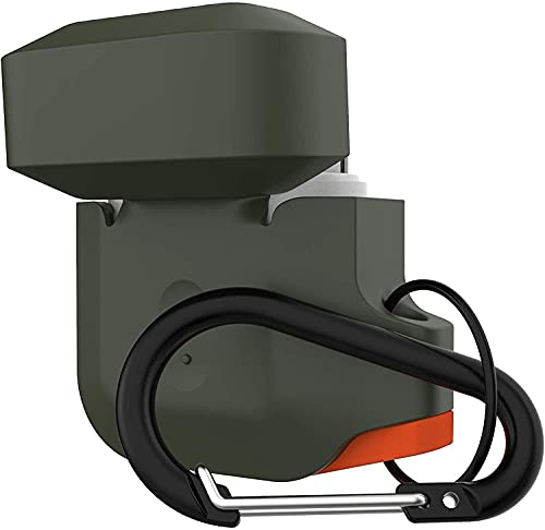 Urban Armor Gear - اربان ارمور جير جراب حماية لسماعات ابل ايربودز (الجيل الاول والثاني) غطاء سيليكون متين مقاوم للماء وناعم الملمس مع حلقة تثبيت قابلة للفصل - اخضر زيتوني