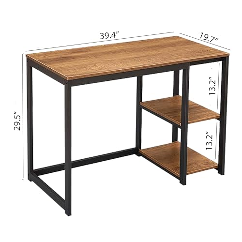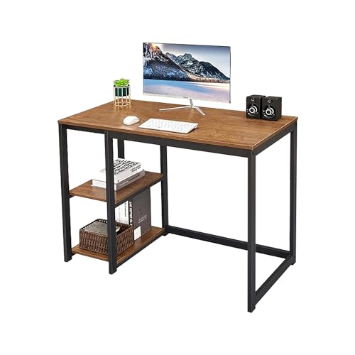 Urban Decor - مكتب كمبيوتر مع رفين متين للمنزل والمكتب مساحة تخزين متوسطة العاب عصري للدراسة والكتابة واللابتوب بني