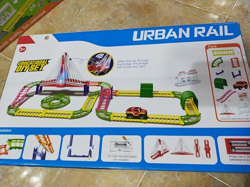 Generic - مجموعة مسار السكك الحديدية الحضرية مع جسر، لعبة تعليمية ذاتية الصنع مع تأثيرات ضوئية وصوتية، مجموعة لعب مركبة للأعمار من 3 سنوات فما فوق