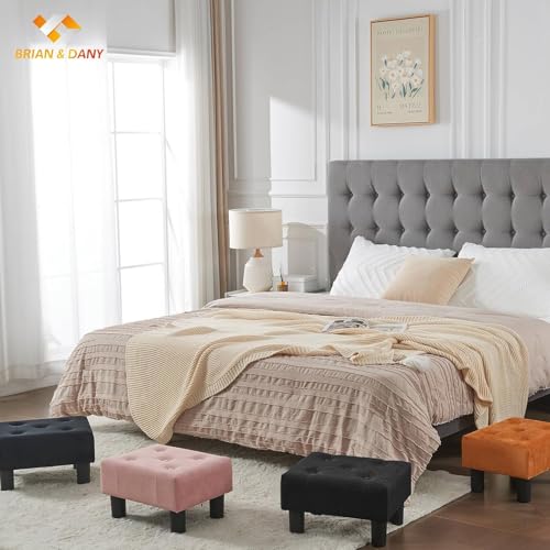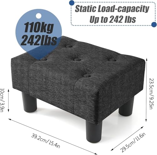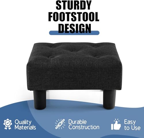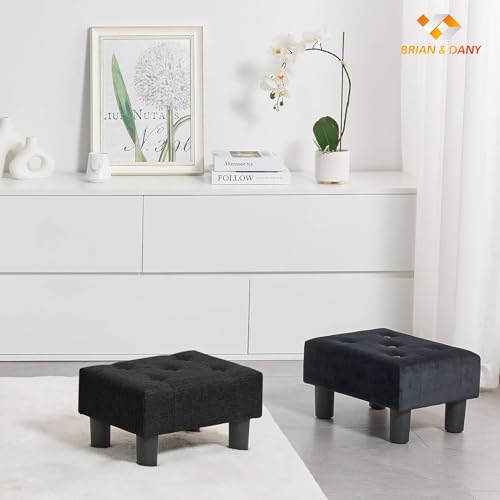 URBAN SIGNATURE - مقعد قدم صغير من اوربان سيجنتشر، أسود مخملي، كرسي حمام بأرجل، مسند قدم صغير ثابت لغرفة المعيشة | تصميم للراحة والأناقة