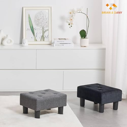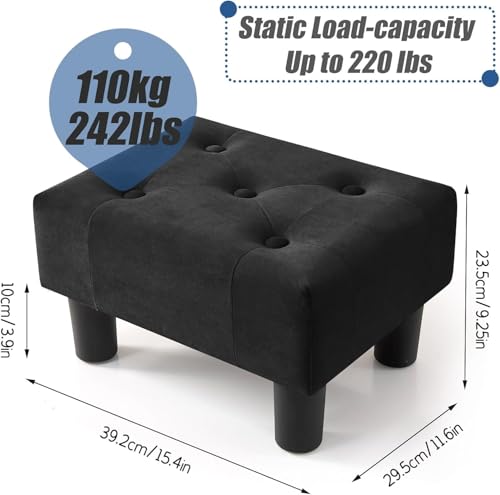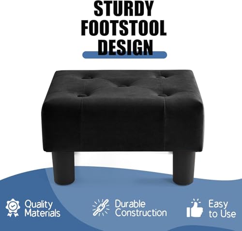 URBAN SIGNATURE - مقعد قدم صغير من اوربان سيجنتشر، أسود مخملي، كرسي حمام بأرجل، مسند قدم صغير ثابت لغرفة المعيشة | تصميم للراحة والأناقة