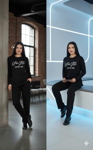 Generic - Urban Style Goods DNM طقم بيجامه نسائيه، بلوزة بأكمام طويلة وبنطلون، قطن، ستايل حضري كاجوال